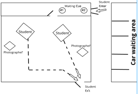 Below is a diagram of the Gym and parking lot for the flow on Picture Day.